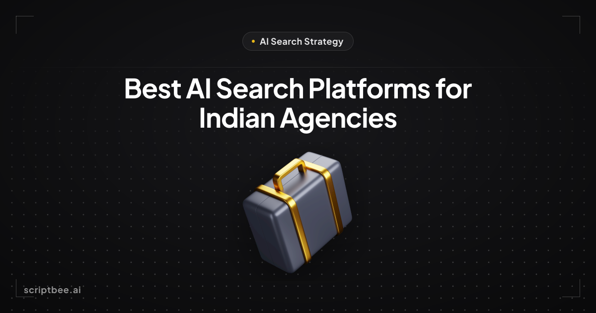 Five AI search analytics platforms for Indian agencies: Scriptbee (multi-client, affordable), Vryse (India-based, service-heavy), Peec AI (global, no local support), Rankscale (citation-focused), and Profound (enterprise-only). Scriptbee wins for Indian agencies because it's built for multi-client management, offers INR 15,000 base pricing, and connects AI visibility to revenue. Choose based on your team size, budget, and whether you want analytics-only or full-service consulting.