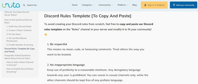 Unita, a hub connecting entrepreneurs and business professionals through various communities, offers a downloadable template titled “Discord Server Rules Tutorial” that guides readers in laying out a clear set of guidelines for their online community.