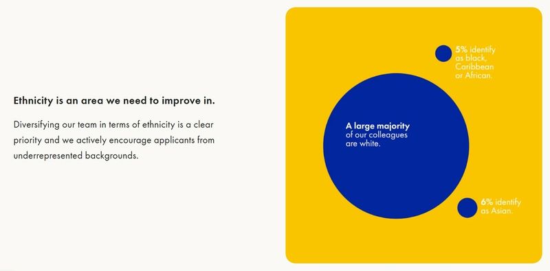In their “Diversity and Inclusion Report,” they celebrate the range of ages, languages, and cultures on their team while openly acknowledging underrepresentation among racial and ethnic minorities.