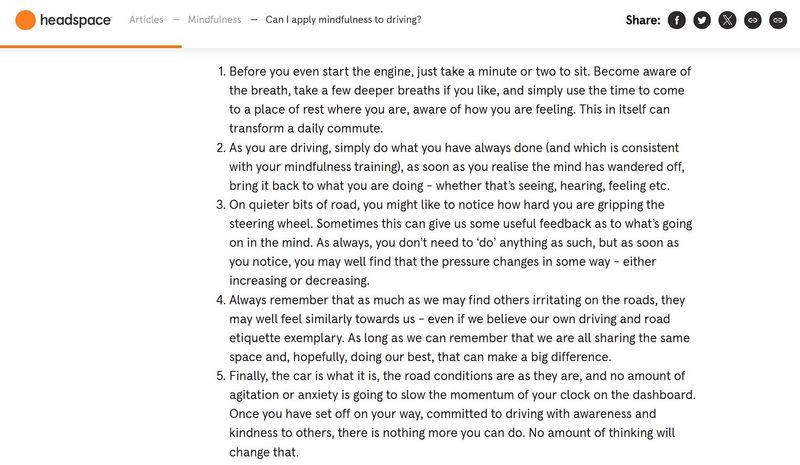 In their “Can I apply mindfulness to driving?” post, the tone feels personal, like a caring chat with a friend. It reassures readers who may already feel overwhelmed, easing anxiety with simple, empathetic phrasing.